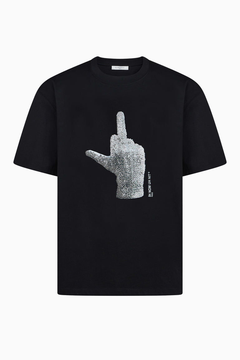 • Front: Black T-shirt with the iconic glove print, reinterpreted by IH NOM UH NIT and enriched with shimmering hotfix crystals.