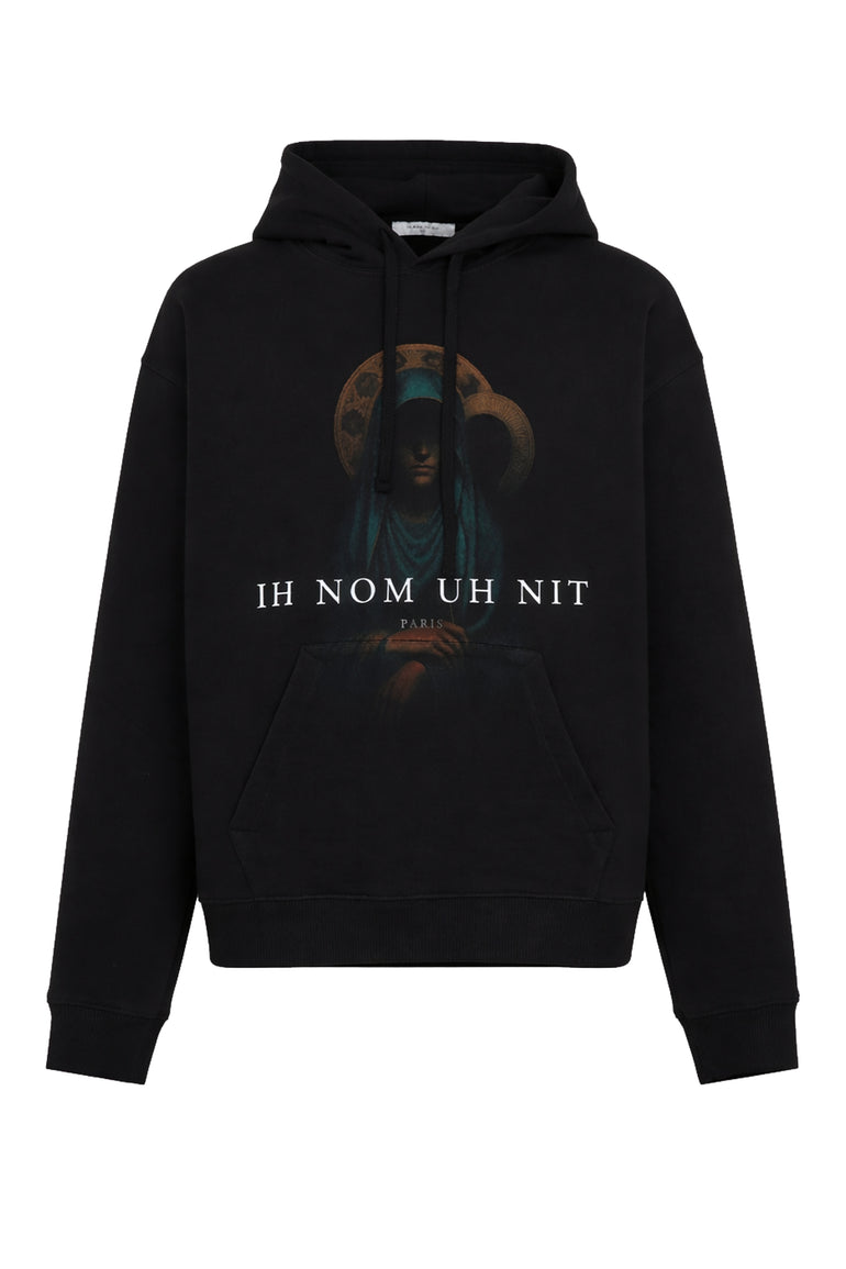 Front: Iconic Holy Mary artwork printed at the center, combined with IH NOM UH NIT Paris lettering for a strong visual impact.