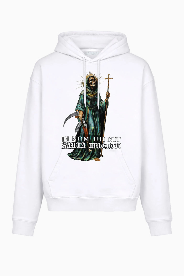 • Front: Santa Muerte graphic printed at the center, paired with IH NOM UH NIT Santa Muerte lettering for a bold and symbolic look.